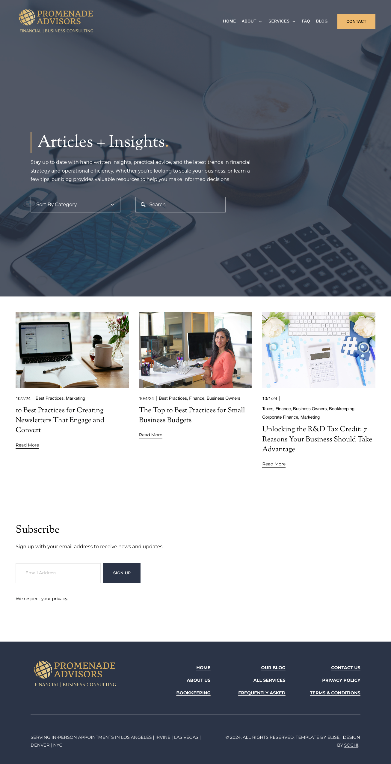 Developed an elegant, SEO-friendly website with fully customized design and copywriting, while helping define the firm’s services to establish a polished, professional identity.